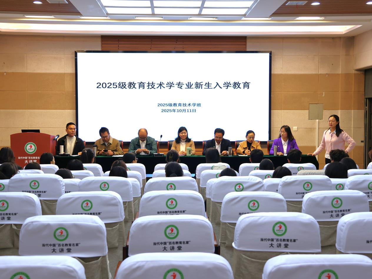 10月11日,教育技术学专业入学教育中,教育技术系主任崔宇路系统介绍了核心课程、技能培养方向,并对标行业趋势与学历要求,提醒新生重视综合能力提升;专业教师团队结合授课内容,从大学生活规划、就业环境分析、考研考编政策等维度答疑,以往届案例展现专业优势,帮助新生构建清晰的学业地图。